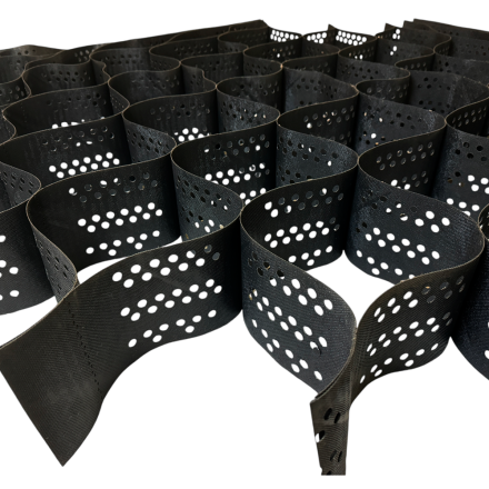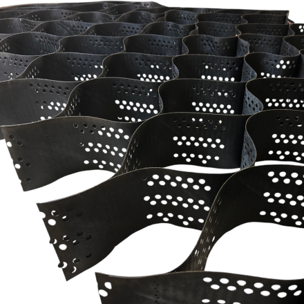 Завдяки гнучкому поліетилену, що формує міцний тривимірний каркас, ця георешітка підходить не лише для гладких поверхонь і пологих схилів, але й для ділянок зі складним рельєфом, забезпечуючи надійну фіксацію навіть на нерівних територіях.