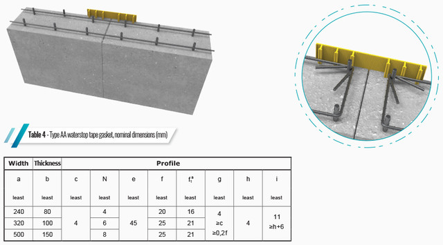 Завдяки плоскій основі та відсутності компенсаційного зазору посередині, ця гідрошпонка ідеально підходить для конструкцій із частковою або повною усадкою — зокрема в плитах фундаментів, підпірних стінах, стиках між конструкцією плити та стіною.
